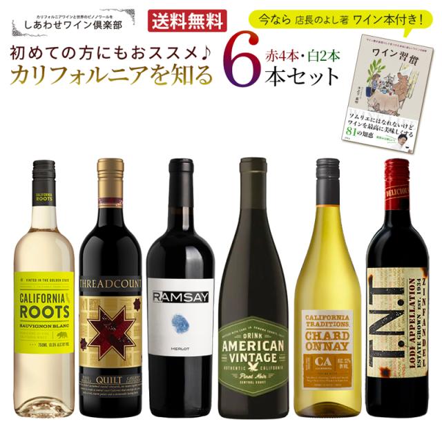 送料無料 カリフォルニアを知るおススメ赤白6本セット 今なら店長著書ワイン本 ワイン習慣 プレゼント クール便は+390円別途請求 ワインセット カリフォルニアワイン ワイン 赤白セット 赤白ワインセット