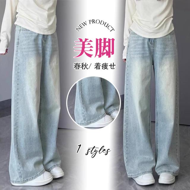 デニム レディース パンツ ジーンズ デニムパンツ ボトムス 美脚 ハイウエスト ワイドパンツ 体型カバー 春秋 ジーパン 大きいサイズ 着痩せ