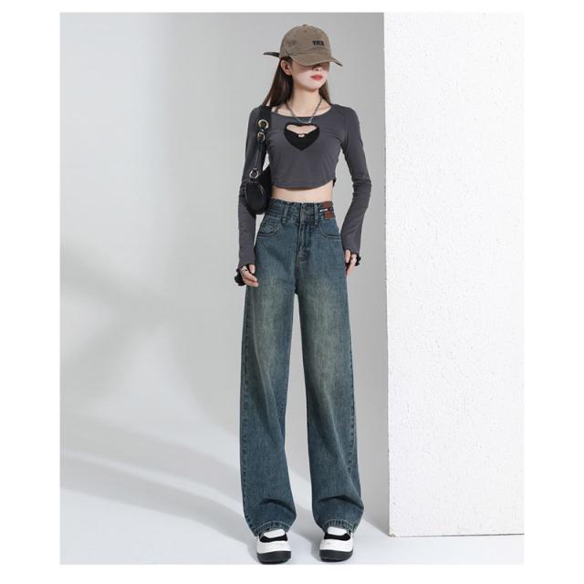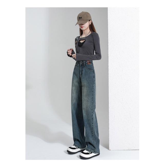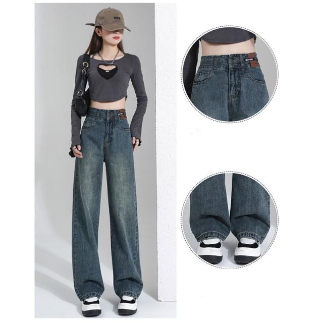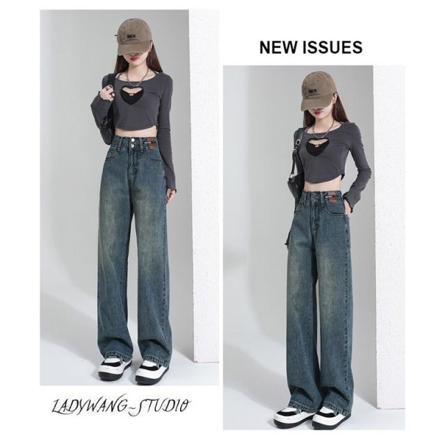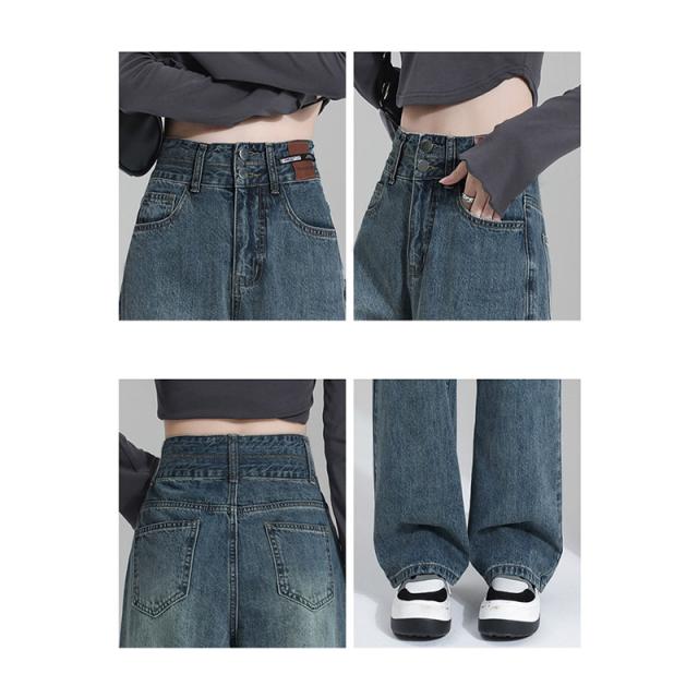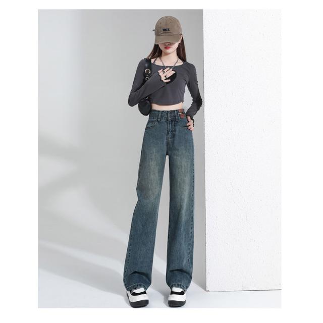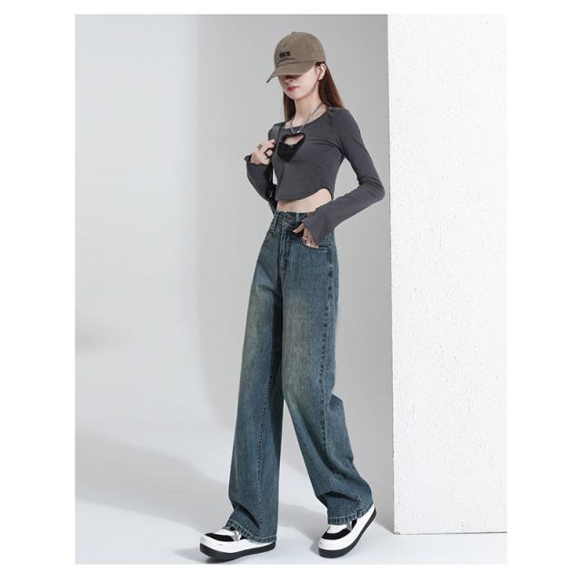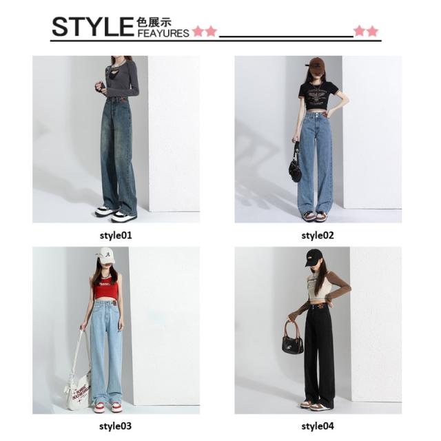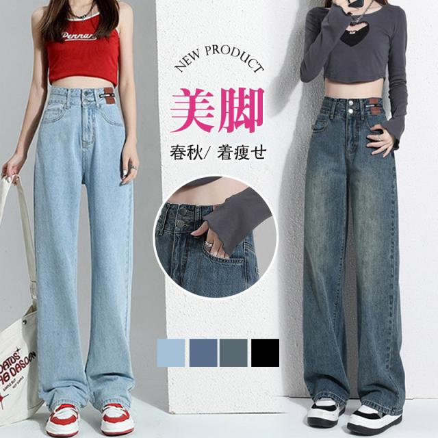 デニム レディース パンツ ジーンズ デニムパンツ ボトムス 美脚 ハイウエスト ワイドパンツ 体型カバー 春秋 ジーパン 4色選択可 着痩せ