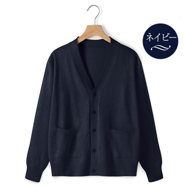 皺になりにくく、型崩れしにくい、お手入れがしやすいカーディガン。