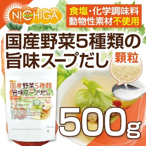 食塩無添加 国産野菜5種類の旨味スープだし 500g 【メール便専用品】【送料無料】 化学調味料無添加 動物性素材不使用 だしの素 業務用 無添加 だし 栄養スープ 旨味だし 旨味 スープ だしの素 うまだし 野菜だし[01] NICHIGA(ニチガ)
