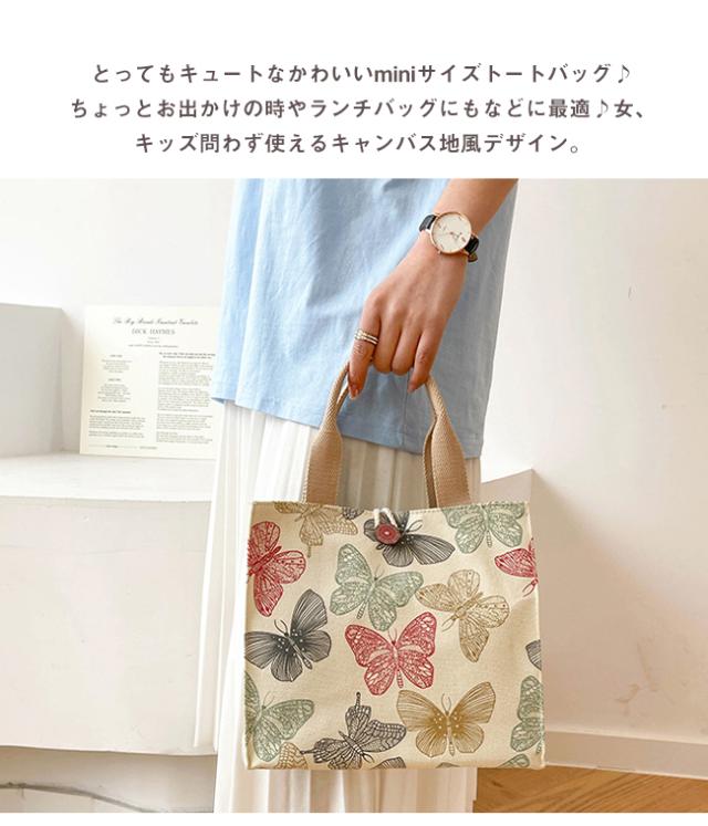 とってもキュートなかわいいminiサイズトートバッグ♪ちょっとお出かけの時やランチバッグにもなどに最適♪女、キッズ問わず使えるキャンバス地風デザイン。