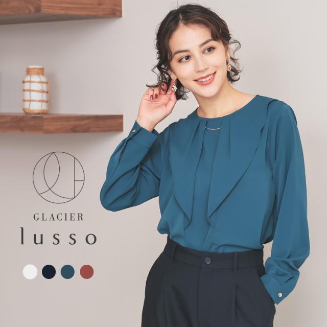 トップス ブラウス 長袖 フリルブラウス アクセサリー付き 再生ポリエステル ラッフルフリル 無地 レディース SALE セール Honeys ハニーズ アクセ付フリルブラウス