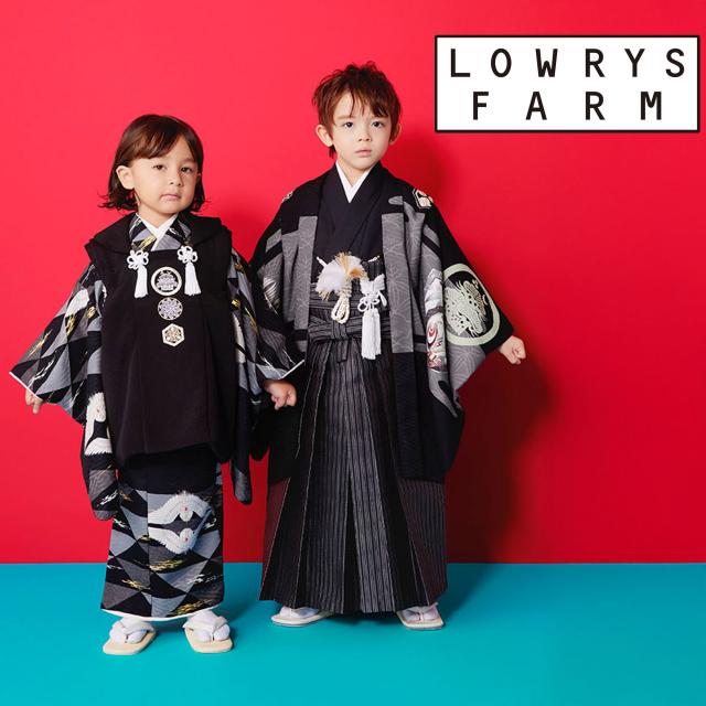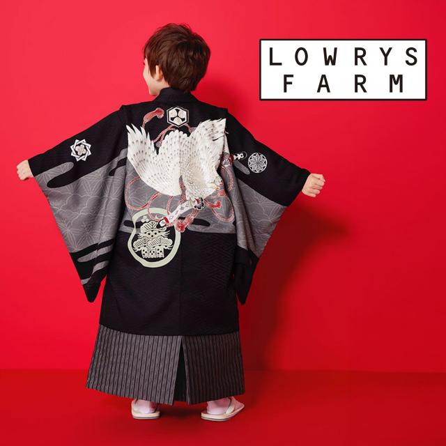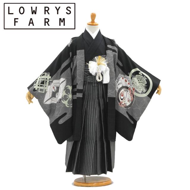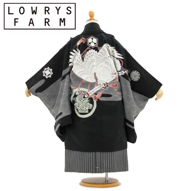 2025年 新作 LOWRYS FARM レンタル 七五三 【かんたん着付け】羽織袴 五歳 男児 着物 アンサンブル セット フルセット【5歳 貸衣装 子供 男の子 着物セット】お正月 卒業式【往復送料無料】 古典 黒 金 鷹 家紋 新品足袋プレゼント