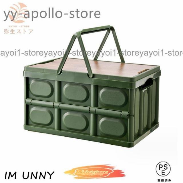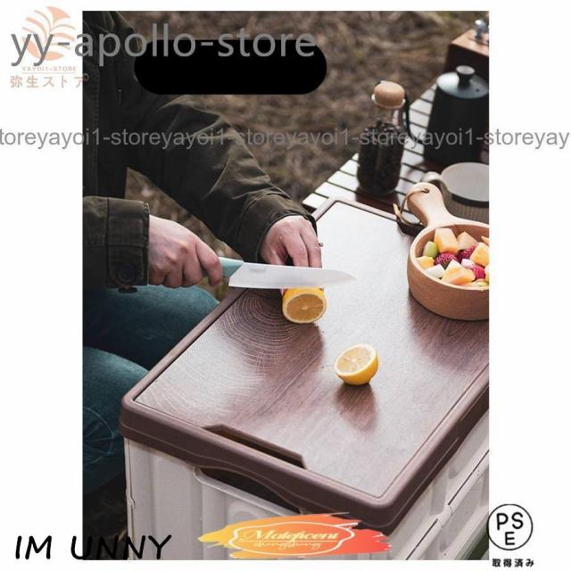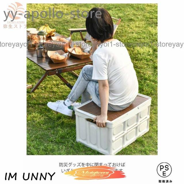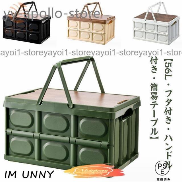 折りたたみコンテナ フタ付き 取っ手付き 56L 収納ボックス 木製蓋付き 大容量 アウトドア テーブル キャンプ 収納ケース 収納box 屋外 屋内