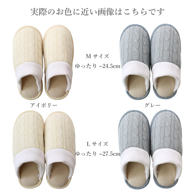 スリッパ ボア ケーブルニット フリース 暖かい 冬用 来客用 室内 M L ルームシューズ 送料無料 1足
