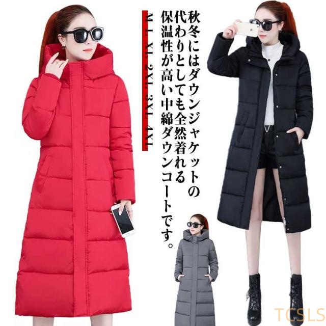 中綿コート アウター ロング 中綿ジャケット レディース ダウン中綿コート レディース フード付き 立ち襟 アウター ロングコート ロング丈 無地 秋冬物 冬服 防風 防寒着 防寒 暖かい 膝丈 軽量 厚手 グレー ブラック レッド