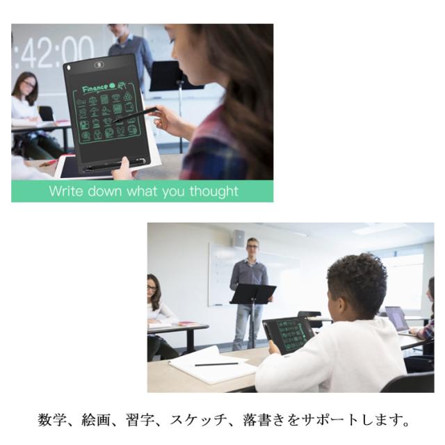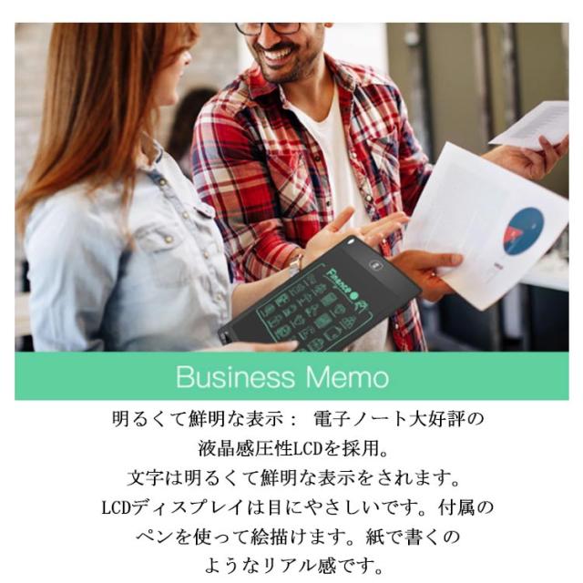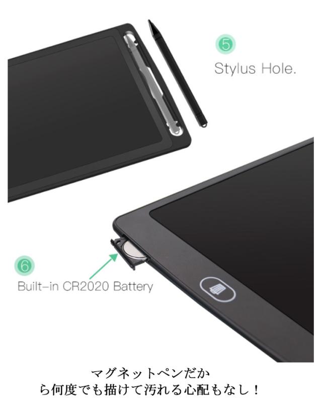 | たくさん書いてさっ!と消せる!何度も使えるお絵かきボード 明るくて鮮明な表示: 電子ノート大好評の液晶感圧性LCDを採用。文字は明るくて鮮明な表示をされます。LCDディスプレイは目にやさしいです。付属のペンを使って絵描けます。紙で書くのようなリアル感です。 削除ボタン: ワンボタンで草稿を削除できます。 マグネットペンだから何度でも描けて汚れる心配もなし! 数学、絵画、習字、スケッチ、落書きをサポートします。 お絵かきは子どもの右脳を鍛えると認められ、想像力と創造力を育てます。 誕生日プレゼント、クリスマスプレゼント、新年プレゼント、最高の選択! | |