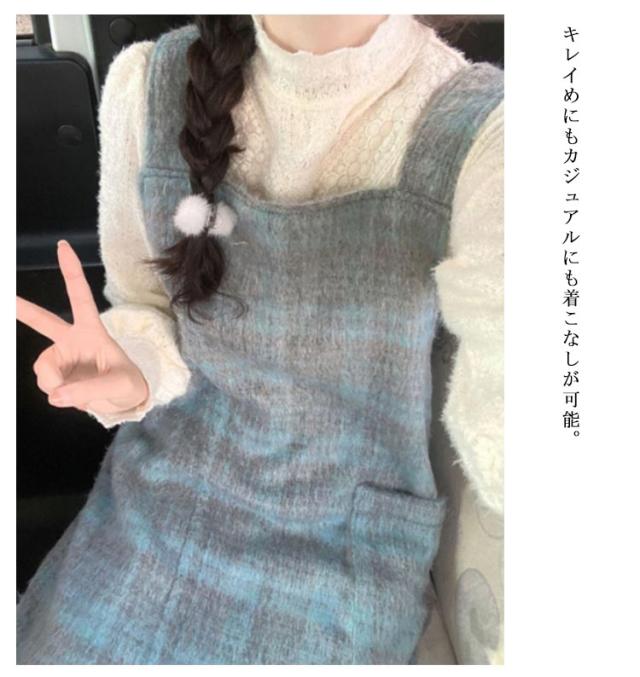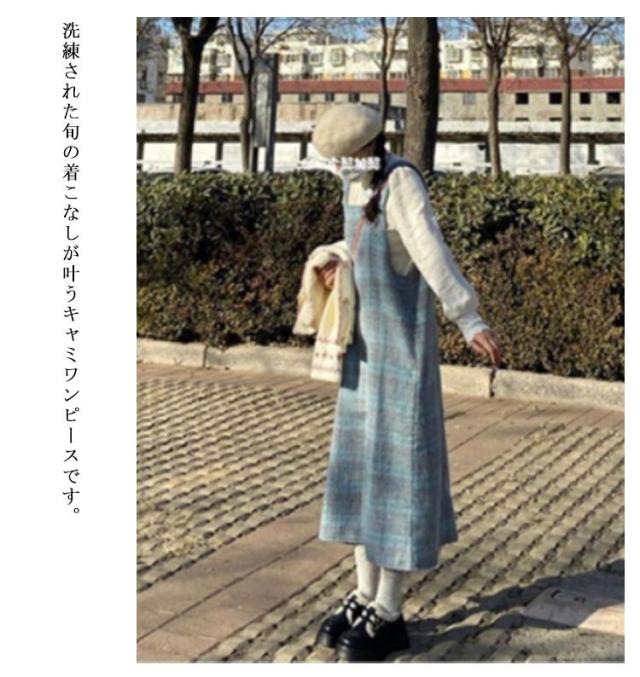 ジャンパースカート レディース 春 秋 冬 チェック柄 ロングワンピース 体型カバー ゆったり ジャンスカ 大人 可愛い マキシ カジュアル Iライン ファッション カジュアル ノースリーブ キャミワンピース 送料無料