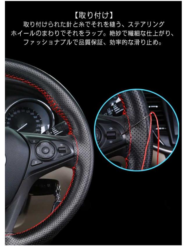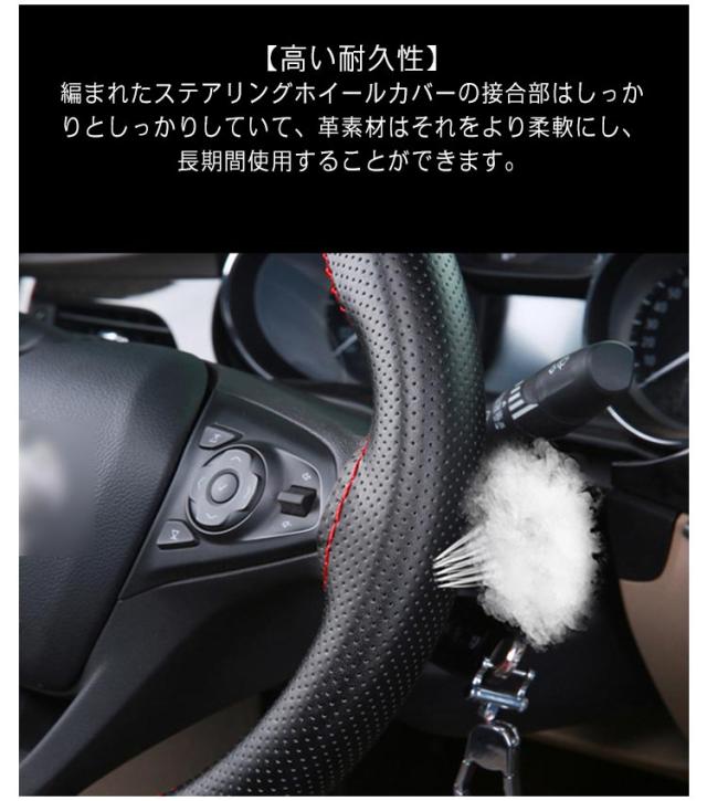 | 【材質】本革の素材を使用しているので、変な匂いがしなく、柔らかくて、握るときにしっかり手になじみます。グリップ感が抜群です。滑り止めの効果もある。 【高い耐久性】編まれたステアリングホイールカバーの接合部はしっかりとしっかりしていて、革素材はそれをより柔軟にし、長期間使用することができます。 【編み込み式ハンドルカバーの特長】取り付け後にカバーに隙間ができないので指が引っかかったり違和感がない。ホコリなどの汚れが隙間に入り込まないので衛生的。太くなり過ぎないので運転していても疲れにくい。 ウレタンハンドルと違い、冬は冷たくない、夏は触れない程熱くない。ハンドル、ハンドルカバーの劣化を防げる。 【取り付け】取り付けられた針と糸でそれを縫う、ステアリングホイールのまわりでそれをラップ。絶妙で繊細な仕上がり、ファッショナブルで品質保証、効率的な滑り止め。 【内容と適応車種】トヨタ、ホンダ、ニッサン、マツダ、ダイハツ、スバル、スズキ、乗用車、軽自動車など様々な車種に適応します。ご車のハンドルサイズを測って、ご確認の上ご購入ください。 | |