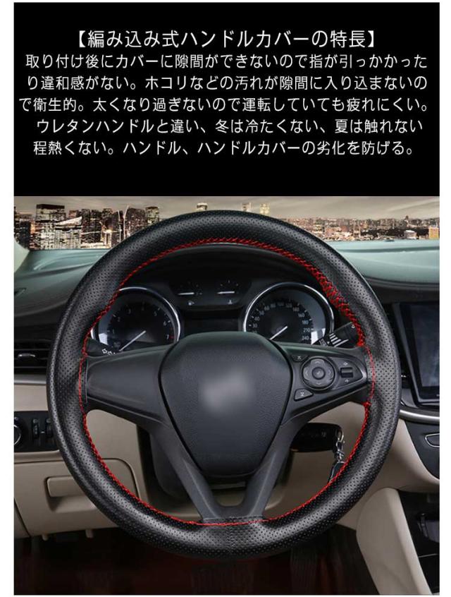 36cm/38cm/40cm ハンドルカバー ステアリングカバー 手縫い 編み込み 牛革 自動車用 軽自動車 編み上げタイプ ハンドル カバー 通気 滑り止め 汚れ防止 撥水 握りやすい 簡単装着 乗用車 内装用品 おしゃれ 春 夏 秋 冬 四季 汎用