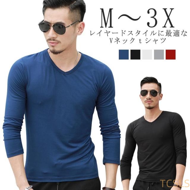 tシャツ 長袖 メンズ ロングTシャツ インナーシャツ Vネック Tシャツ カットソー 無地 重ね着 レイヤード インナー 暖かい トップス おしゃれ 春 秋 冬 服 トップス 通勤 通学 タイト カジュアル ホワイト ブラック ネイビー レッド グレー 送料無料