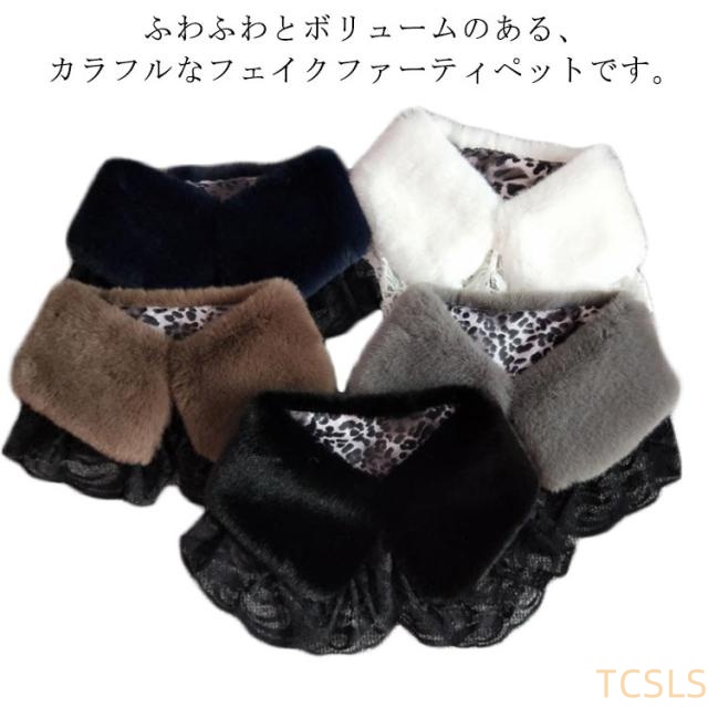 送料無料 ティペット レディース ボリューム フェイクファー ふわふわ 付け襟 付け衿 裏地付き レース マフラー カラー 毛皮 女性用 ファー小物 ふわふわ パーティ お呼ばれ 結婚式 大人 かわいい