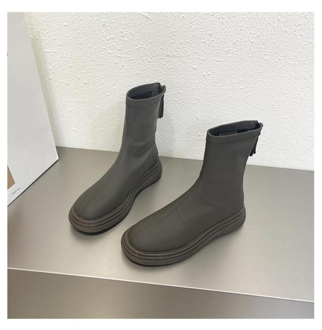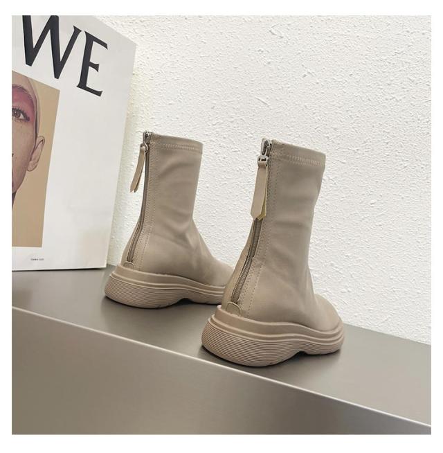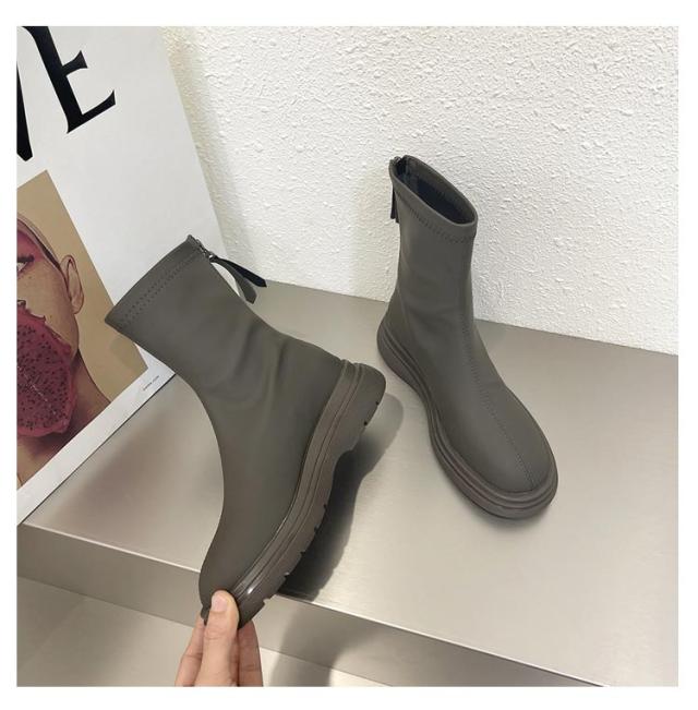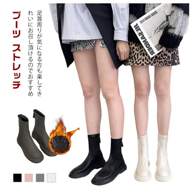 ブーツ ストレッチ レディース ローヒール ショートブーツ ラウンドヒール ラウンドトウ ストレッチブーツ トラックソール トラックソールブーツ カジュアル 秋 歩きやすい 防水 撥水