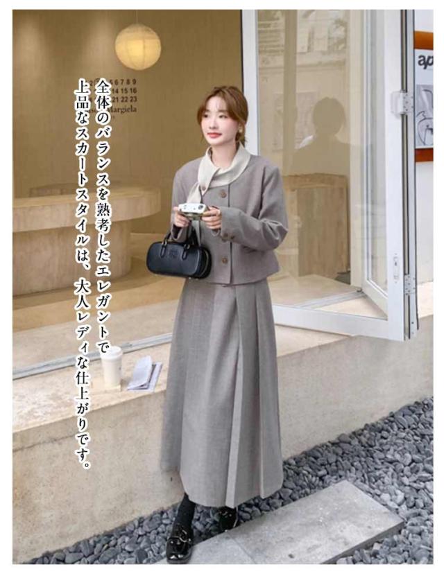 レディース 40代 スカートスーツ セレモニースーツ ママ 母 卒業式 ノーカラージャケット ロングスカート スカート プリーツ ママスーツ 入学式 セットアップ 入園式 卒園式 セレモニー 30代 スーツ 50代 大きいサイズ カジュアルスーツ グレー