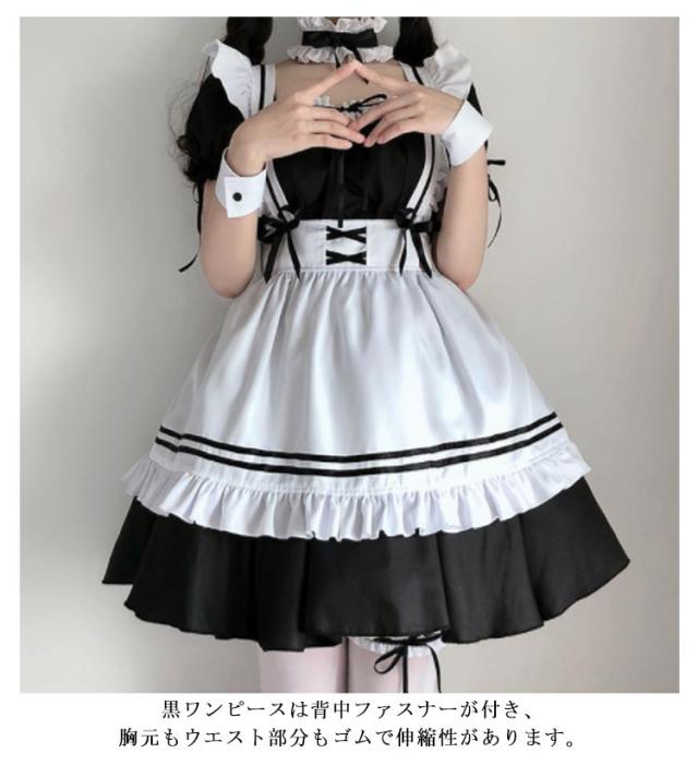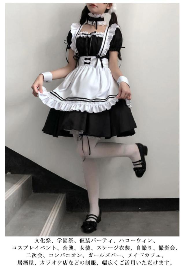 | メイド服 8点セット なデザインでメイド服が好きな人へ向けたメイド服が登場。男性でもご使用できます。 黒ワンピースは背中ファスナーが付き、胸元もウエスト部分もゴムで伸縮性があります。 文化祭、学園祭、仮装パーティ、ハローウィン、コスプレイベント、余興、女装、ステージ衣装、自撮り、撮影会、二次会、コンパニオン、ガールズバー、メイドカフェ、居酒屋、カラオケ店などの制服、幅広くご活用いただけます。 | |