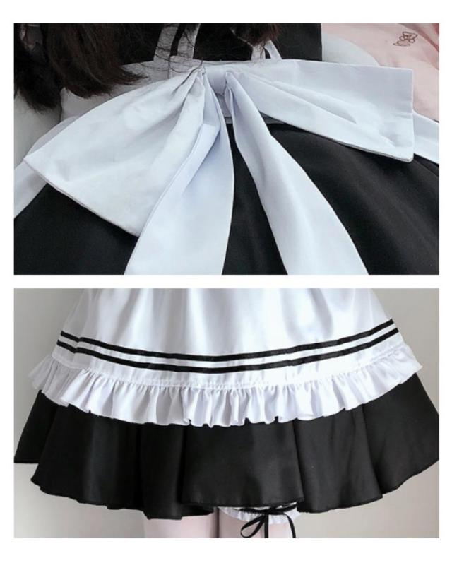 | サイズについての説明 | セット内容:ワンピース(黒)*1点・エプロン(白)*1点・カチューシャ*1点・チョーカー(首)*1点・カフス(腕)*2点・ガーターリング(片太もも)*2点 サイズ:写真通り ※上記サイズは平置き実寸になります。サイズ表の実寸法は商品によって1-3cm程度の誤差がある場合がございます。 |