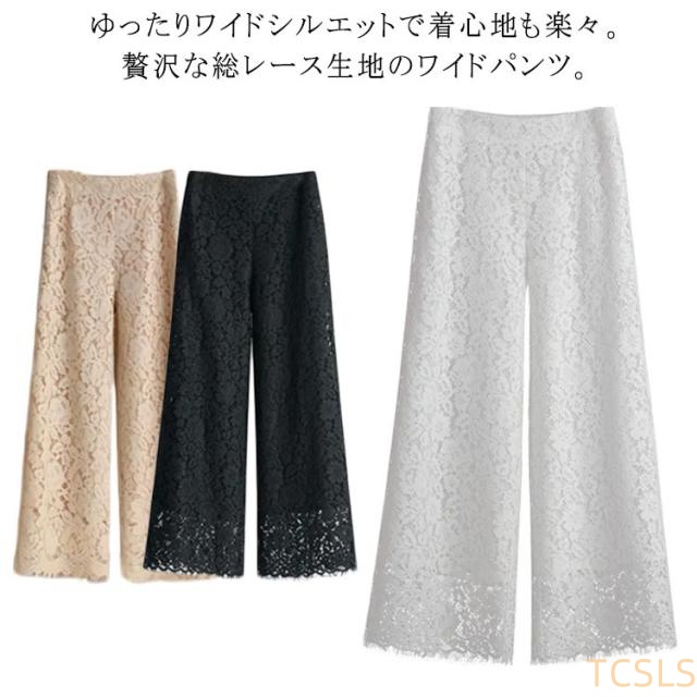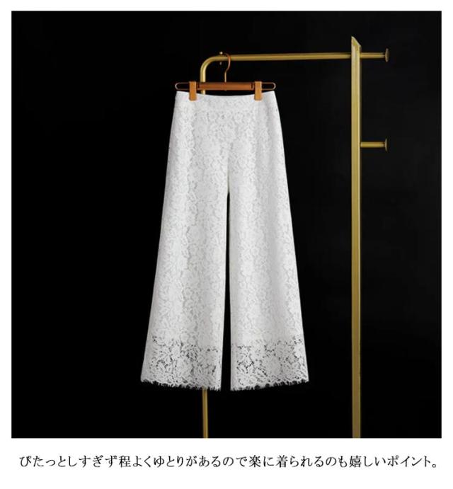 シアー レディース パンツ 体型カバー 春夏 フレアパンツ レース ワイドパンツ ワイドパンツ 裏地あり レース リラックスパンツ 総レース 大きいサイズ 透け感 ロング丈 花柄 きれいめ ゆったり 大人 ワイドパンツ ガウチョパンツ 秋 夏 涼しい