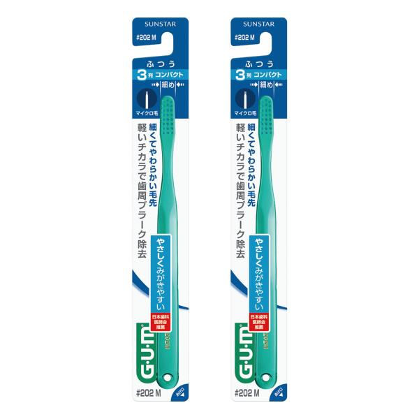GUM (ガム) デンタルブラシ 3列コンパクト ふつう #202 1本×2個セット メール便送料無料