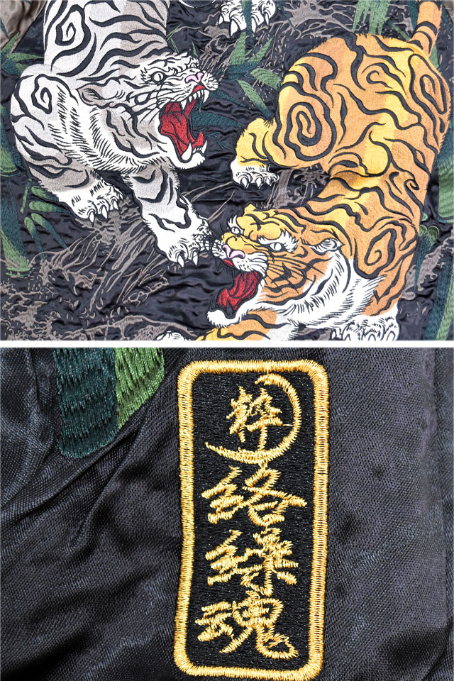 背中には二頭の虎の姿をダイナミックに刺繍しました。