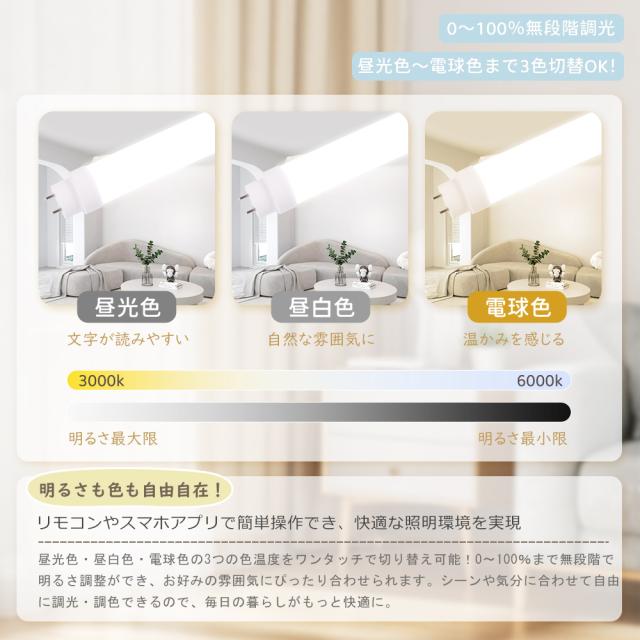 ★スマホアプリやリモコンで、明るさや色温度を簡単調整。座ったまま、寝室やリビングの光を自在にコントロールできます。