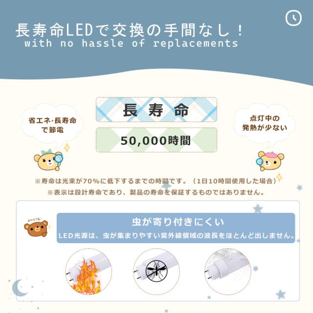 ★約50000時間、寿命は蛍光灯の約4〜8倍で遥かに長寿命!交換する頻度が少なくて済みます!電力の消費を大幅に節約しお家の電気代も削減できます。低消費電力を実現!