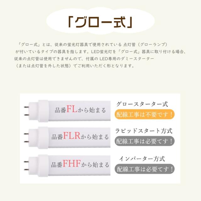 ★お使いの器具がグロースターター式の場合は、工事不要でグロー球を外すだけでご使用いただけます。