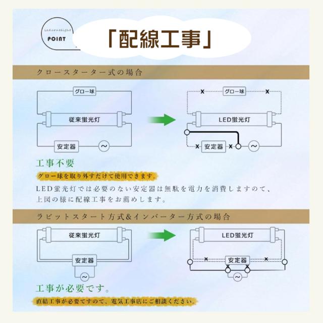 ・お使いの器具がグロースターター式の場合は、工事不要でグロー球を外すだけでご使用いただけます。