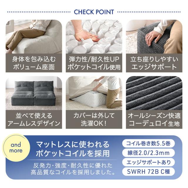 1P ソファー 洗える カバー ポケットコイル カバーリングソファー ユニットソファー ローソファー カバーリング ソファ sofa 小さい 一人 一人用 コーデュロイ かわいい 北欧 おしゃれ