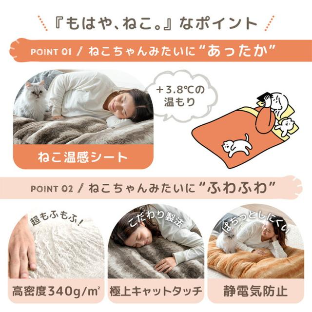 生地:ポリエステル100%カチオン生地(340g/m2、静電気防止カーボン糸、ねこ温感シート+3.8℃加工)