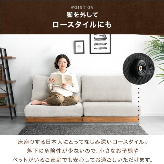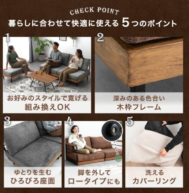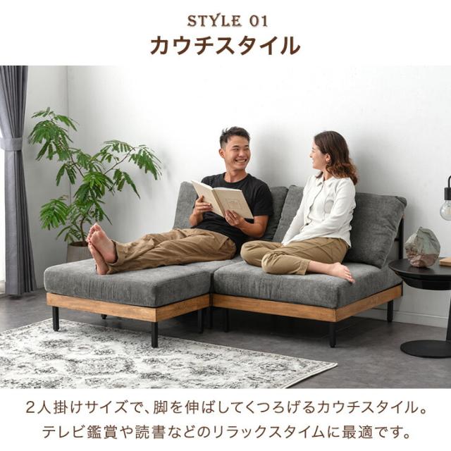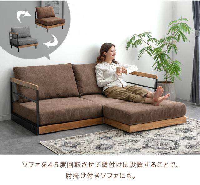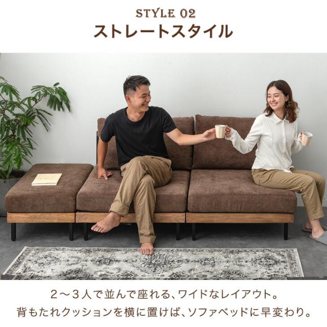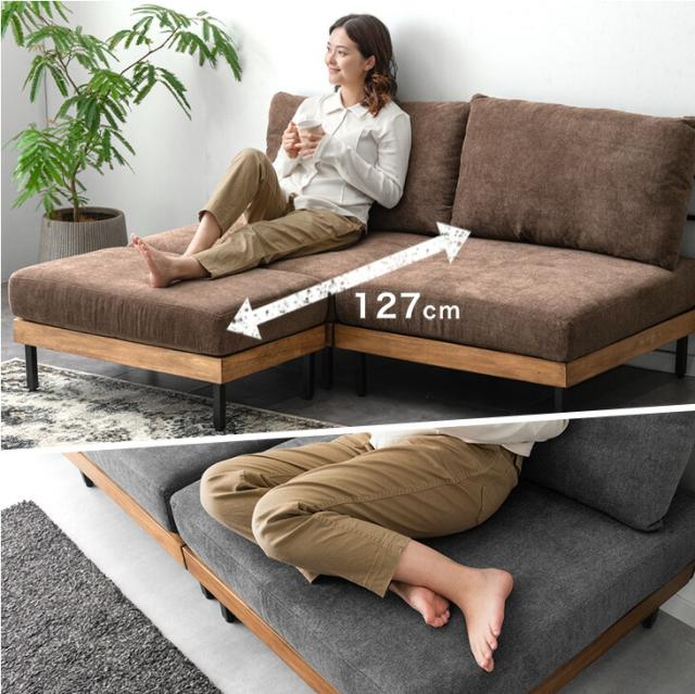 カウチソファ 天然木 ソファ 2人掛けソファ ベッドソファ ソファーベッド ローソファー フロアソファ ソファセット L字 L字ソファ オットマン付き ビンテージ ブラウン ベージュ グレー