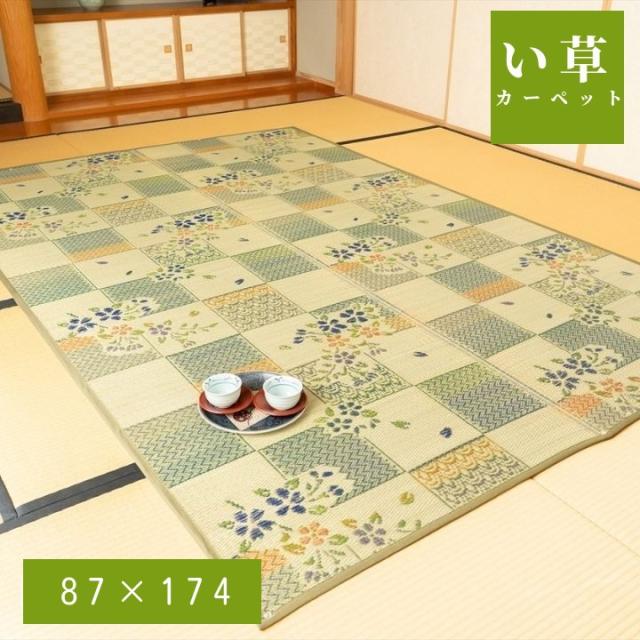 綾花 い草 ござ 花ござ 上敷き 和室 敷物 カーペット リビング 花柄 お手入れ簡単 夏 抗菌防臭 調湿 消臭 空気清浄 汚れにくい 江戸間1畳 87×174cm グリーン
