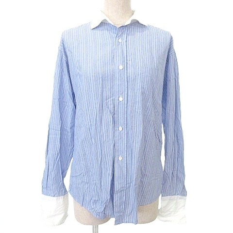 【中古】レイビームス Ray Beams クレリック ストライプ シャツ Lサイズ相当 青系 ブルー A0815