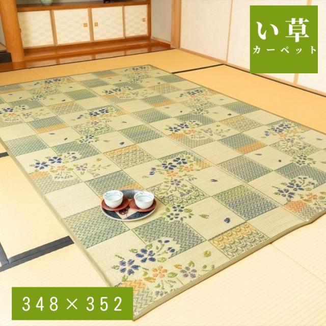 綾花 い草 ござ 花ござ 上敷き 和室 敷物 カーペット リビング 花柄 お手入れ簡単 夏 抗菌防臭 調湿 消臭 空気清浄 汚れにくい 江戸間8畳 348×352cm グリーン
