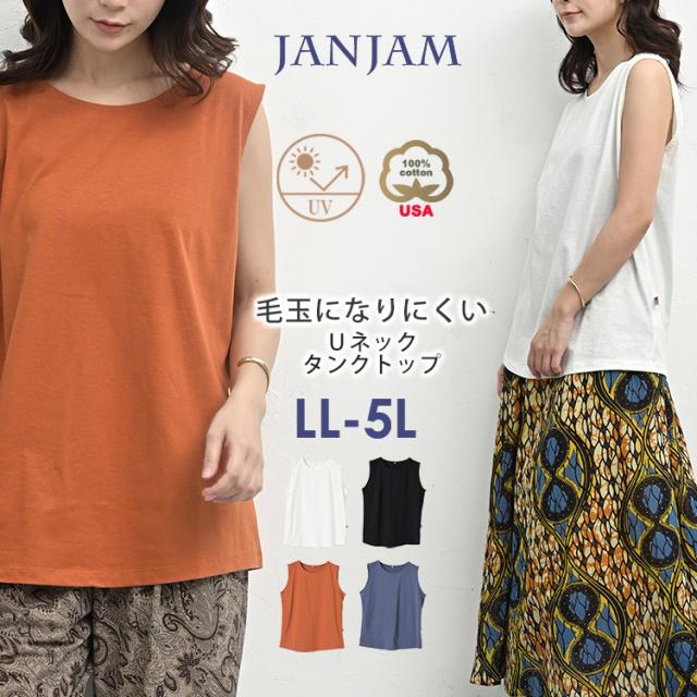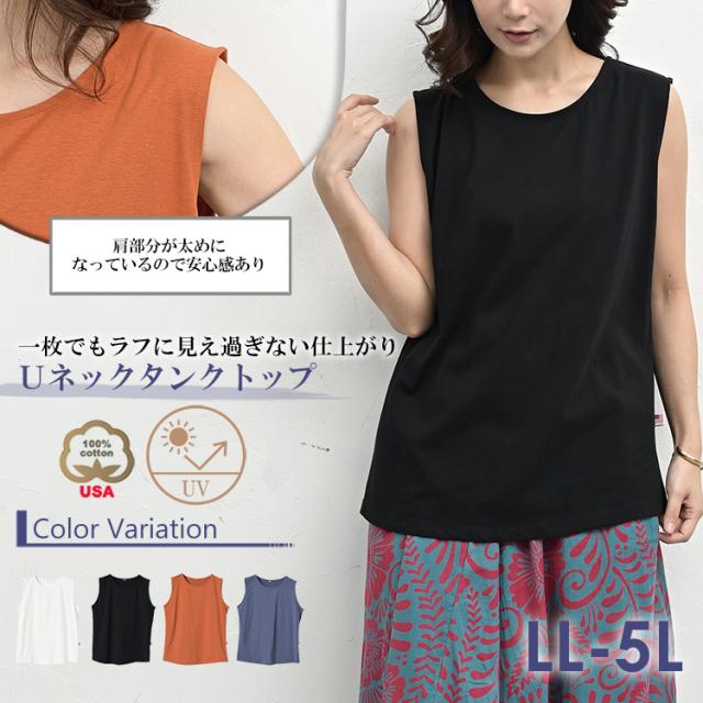 大きいサイズ レディース タンクトップ メール便対応 Uネック UVカット USAコットン 無地 トップス UVSS cotton100 LL/3L/4L/5L ゆったりサイズ ぽっちゃり女子 プラスサイズ