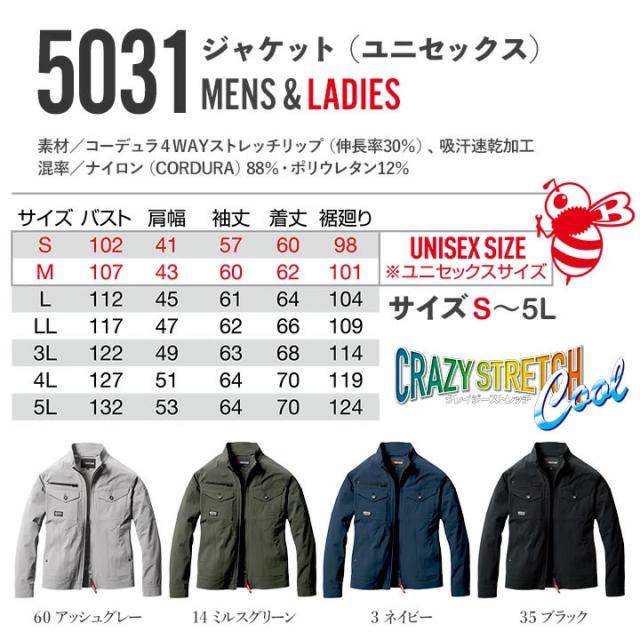 バートル ジャケット 長袖 5031 接触冷感 吸汗速乾 ストレッチ 軽量 4WAY 耐久性 ユニセックス 春夏 移動着 作業服 作業着 コーデュラ BURTLE