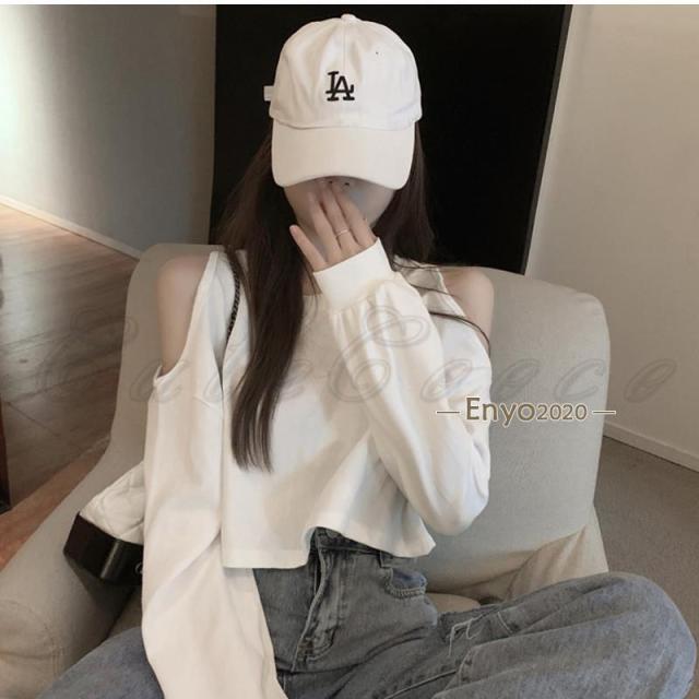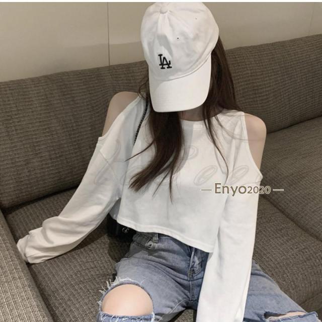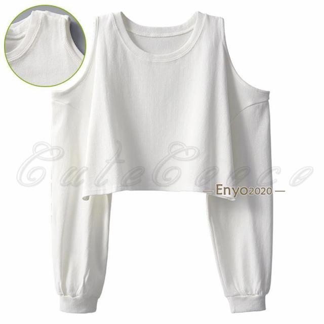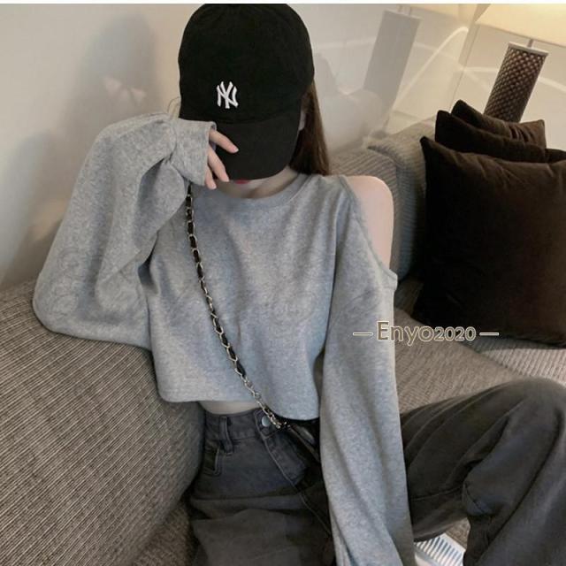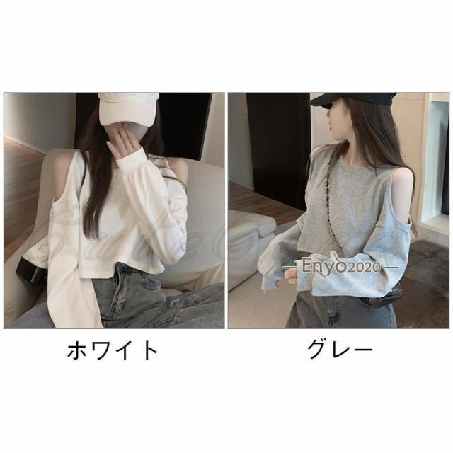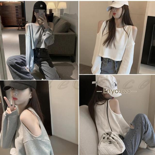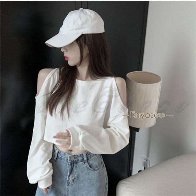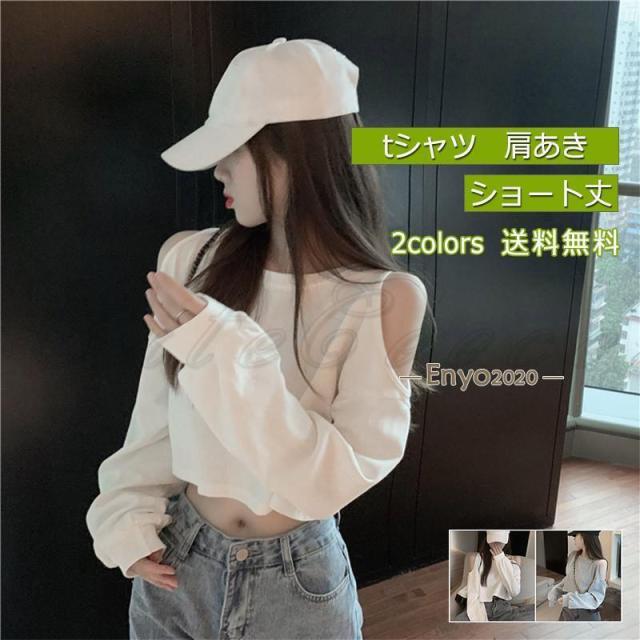 tシャツ レディース 長袖Tシャツ 無地 へそ出し 肩あき ショート丈 トップス カジュアル ゆったり 脚長効果 通勤 通学 春夏秋 おしゃれ