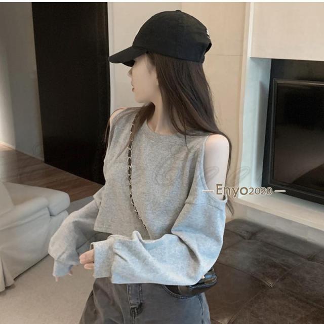 オープンショルダーの使いやすい長袖Tシャツです。