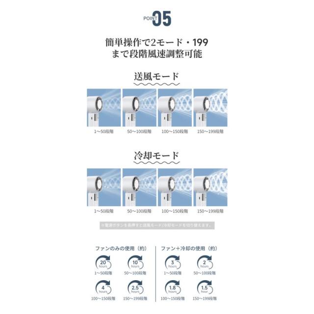 2025 ハンディファン 冷却プレート 扇風機 199段階風量 卓上 USB 小型 静音 腰掛け 手持ち 6000mAh Max20時間連続 充電式 可愛い
