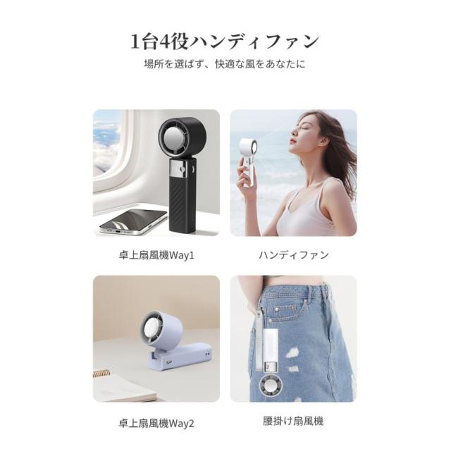 本商品は手持ち扇風機、卓上扇風機、腰掛け扇風機として機能を兼ね備えていて、どの場でも気軽にご使用いただけます。