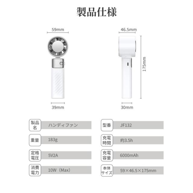 【6000mAh大容量&持続送風】