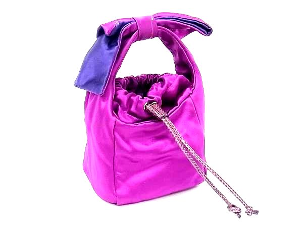 kate spade ケイトスペード サテン 巾着型 リボン ワンハンドル ハンドバッグ ミニバッグ レディース パープル系 DG8373