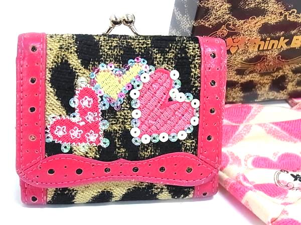 Think Bee! シンクビー!アニマルハート レザー スパンコール ハート レオパード がま口 三つ折り 財布 ウォレット ピンク系 DK1751