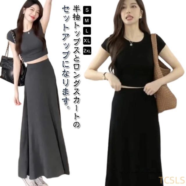 tシャツ ロングスカート タイトワンピース スリム 上下セット 春 着痩せ スカート ロングワンピース 夏 綿 Tシャツ レディース カットソー シンプル 半袖 伸縮性 薄手 無地 細見え Tシャツ 部屋着 ルームウェア 通気性 ストレッチ おしゃれ フェミニン 通勤 通学