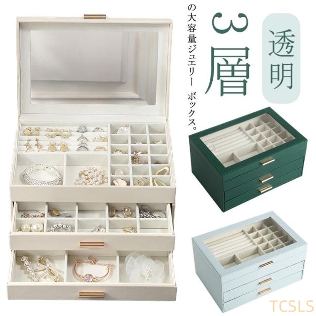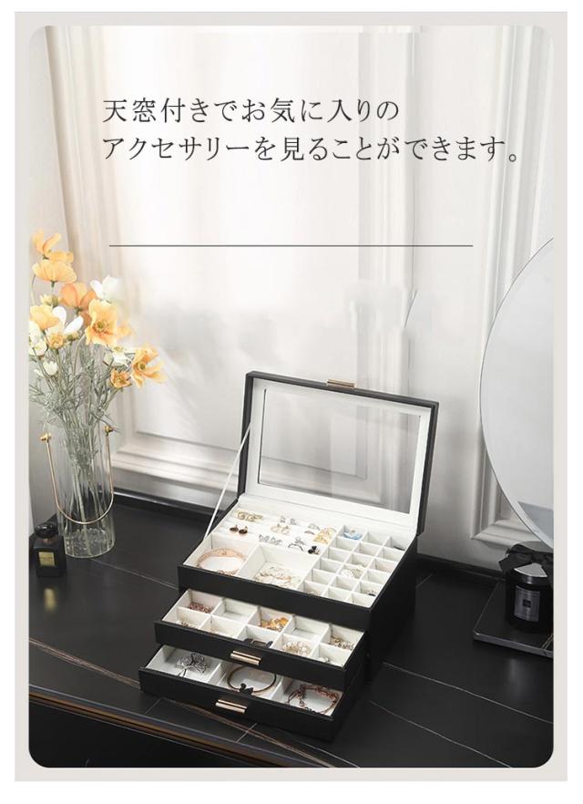 ジュエス ジュエリーケース アクセサリーケース アクセサリー 収納 ボックス 3段式 大容量 透明 アクセサリー収納ケース ジュエリー アクセサリー入れ マグネット式 天窓付き