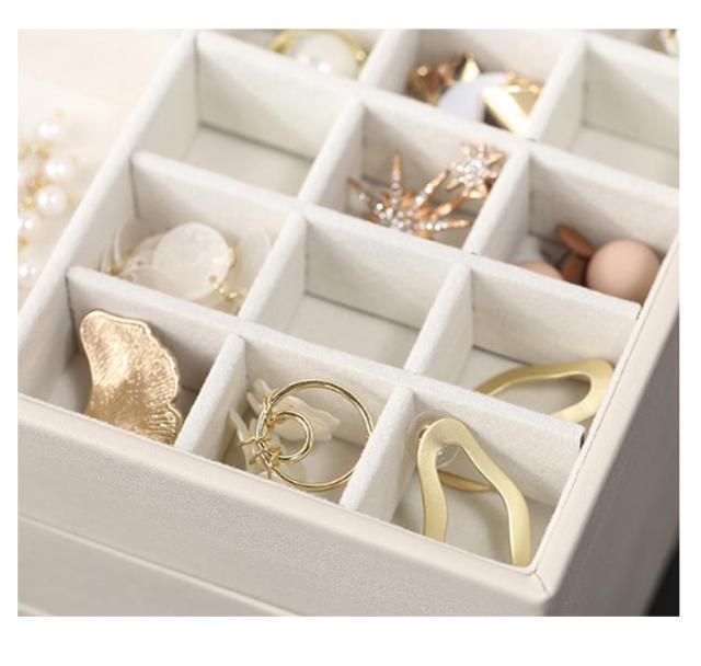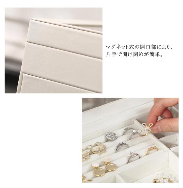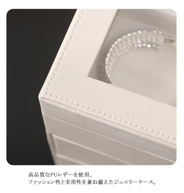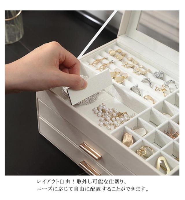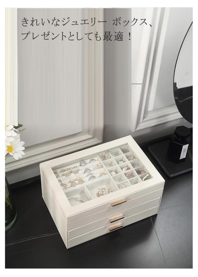 | 3層の大容量ジュエリー ボックス。 お気に入りのアクセサリーやジュエリーがひとまとめ収納可能♪ 高品質なPUレザーを使用、ファッション性と実用性を兼ね備えたジュエリーケース。 天窓付きでお気に入りのアクセサリーを見ることができます。 レイアウト自由!取外し可能な仕切り、ニーズに応じて自由に配置することができます。 マグネット式の開口部により、片手で開け閉めが簡単。 きれいなジュエリー ボックス、プレゼントとしても最適!記念日、お誕生日、お祝いに、ぜひご活用してください。 | |