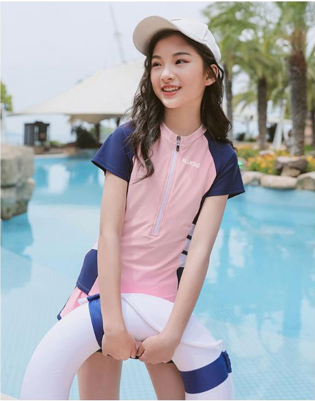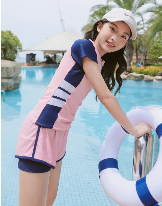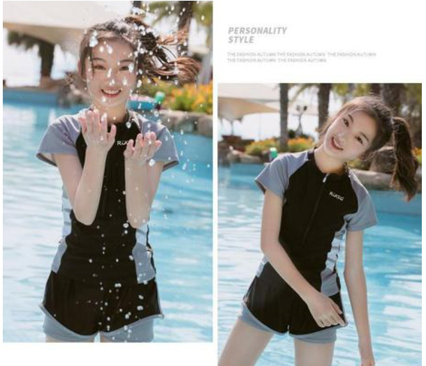 2点セット 水着 通気性 速乾 セパレート 前開き 半袖Tシャツ ショートパンツ 小学生 中学生 高校生 体型カバー 露出控えめ 可愛い