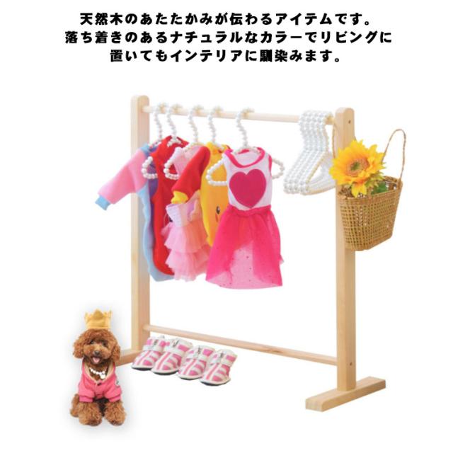 犬服 ハンガーラック 木製 犬 猫 お洋服ラック ペット用 ワードローブ 小型犬 中型犬 猫服 犬服 洋服 収納 片付け ペット服 ポールハンガー 物干し コンパクト ナチュラル 北欧 おしゃれ 頑丈