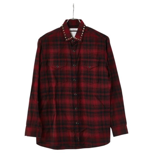ヴァレンチノ チェック ロックスタッズ シャツ ネルシャツ サイズ:39 レッド ブラック コットン ウール メンズ Valentino 【中古】