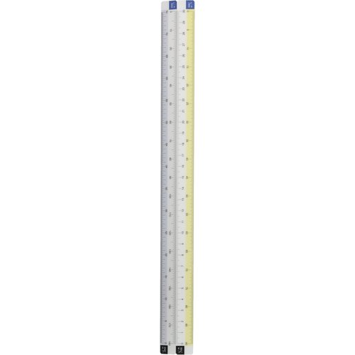 ●図面作成、寸法の読み取りに使用する三角スケール。 ●折りたたみ式です。 ●2方向から目盛を配した直尺4枚を連結しています。 ●縮尺の異なる8種の目盛から選んで使用できます。 ●ラミネート製法(4層構造)で目盛が消えません。